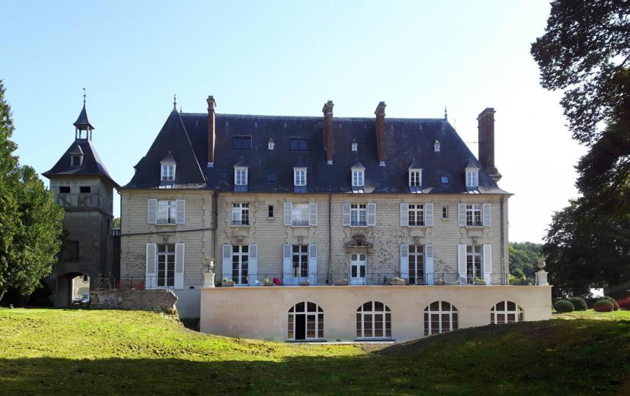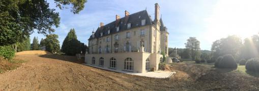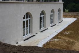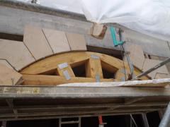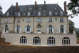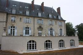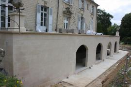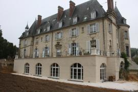 Extension sur façade arrière du château de Lizy. Pierre massive de Savonnières. Cintrages réalisés par nos soins.
