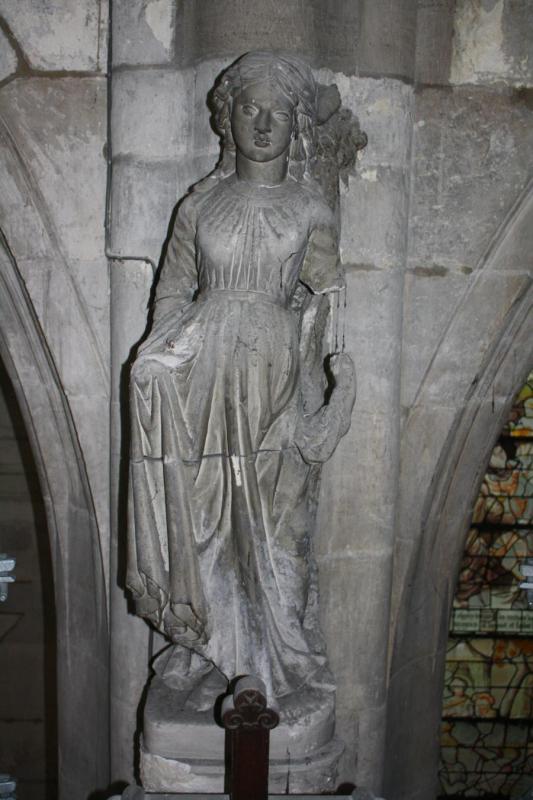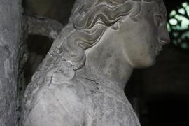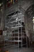 Dépose en conservation d'une statue fortement dégradée du XVIème siècle représentant Eve et placée au-dessus de la chaire.