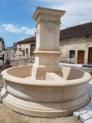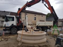 Bassin de 3 mètres de diamètre réalisé en deux éléments de pierre d'Euville et moine ornementé en pierre d'Euville et de Savonnières.