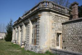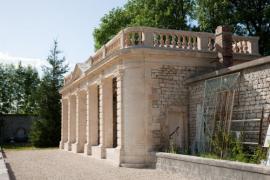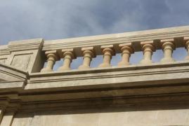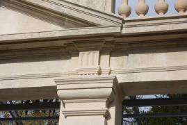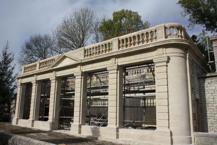 Ravalement et remplacement de pierres dégradées sur façade principale. Dépose et repose de l'intégralité de la balustrade composée d'éléments en terre cuite.