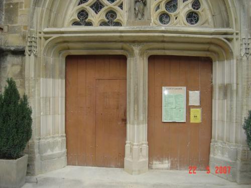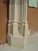 Restauration du porche d'entrée. Restitution de la base et du départ du pilier central, restauration de jambages latéraux. Emploi de pierre de Savonnières.