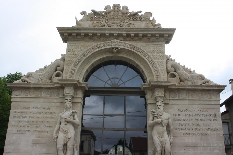 Restauration de la façade antérieure de la fontaine-lavoir de Lacroix sur Meuse.
