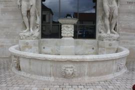 Restauration des sculptures, travaux de fontainerie pour remise en eau du bassin. Restitution de la vasque.