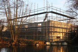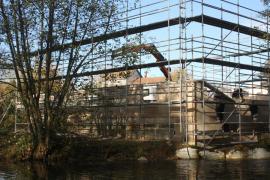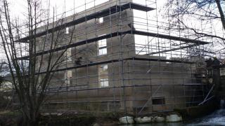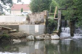 Restitution du moulin de Brabant le Roi et de la maison d'habitation attenante après l'incendie qui les a ravagés en 2013. Pose de pierre massive de Savonnières.