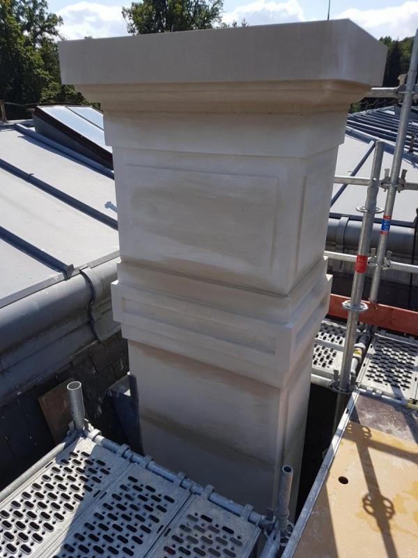 Restauration à neuf et à l'identique d'une souche de cheminée sur toitures du château de Louvemont.