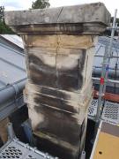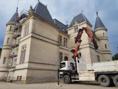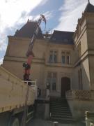 Taille en atelier des éléments en pierre de Savonnières. Dépose et repose sur site au moyen du camion grue.