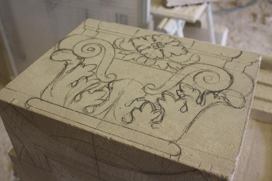 Réalisation de linteau de style Renaissance destiné à la restauration d'une façade dans le secteur sauvegardé de la Ville Haute de Bar le Duc.